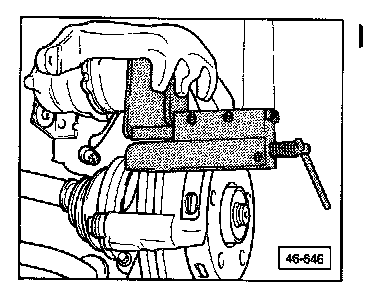 Remove lower fastening bolt for brake caliper housing (arrow) while holding guide pin
