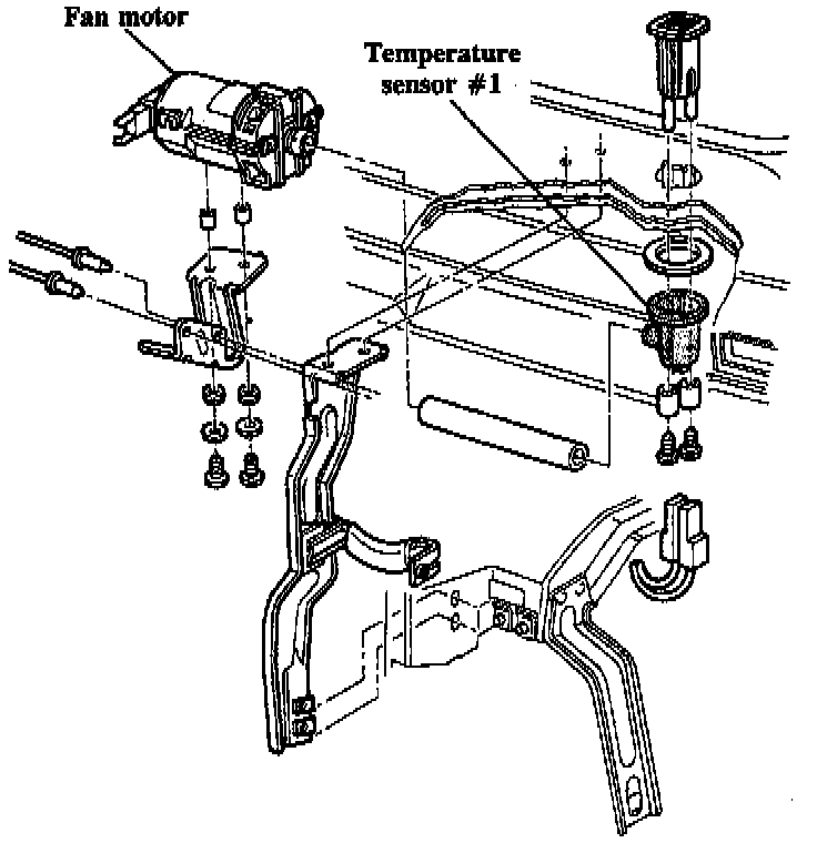 Temperature sensor # 1 (G56) is located in the dashboard. A small suction fan is used to draw interior air over the sensor to ensure accurate measurement. The fan operates when the ignition is on.