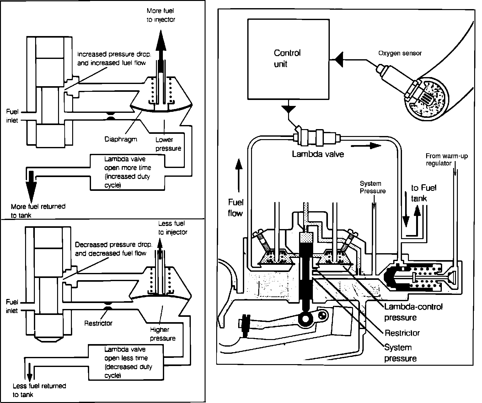 To fully understand the role of the oxygen sensor frequency valve, it is necessary to have a basic understanding of the fuel distributor, and how "control pressure" and "differential pressure" affect its operation.