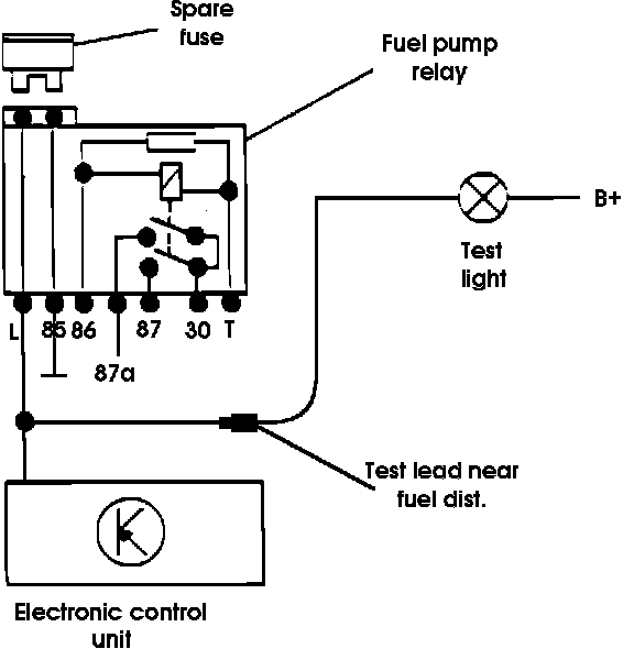 Schematic Representation Of Test Light And Fuel Pump Relay Connections: