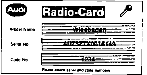 As of model year 1990, Wiesbaden and Delta radios are assigned a fixed four digit security code from the factory. Unlike previous coded radios, the security code cannot be changed.