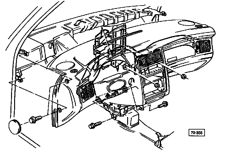 ^ keeping side and bottom mounting screws loose, adjust gap between instrument panel and windshield to approximately 7.0 mm (9/32 in)