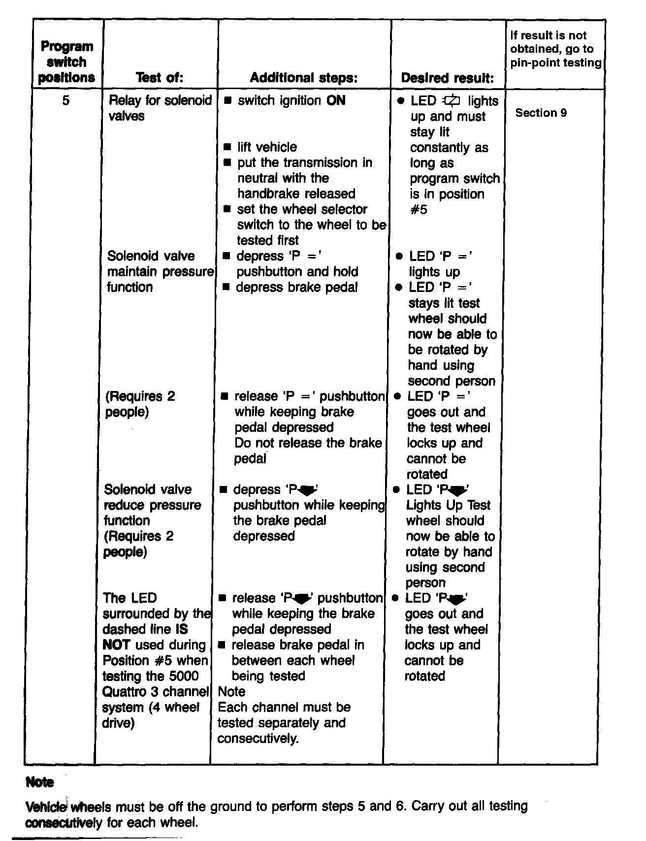 Note: Vehicle wheels must be off the ground to perform steps 5 and 6. Carry out all testing consecutively for each wheel.