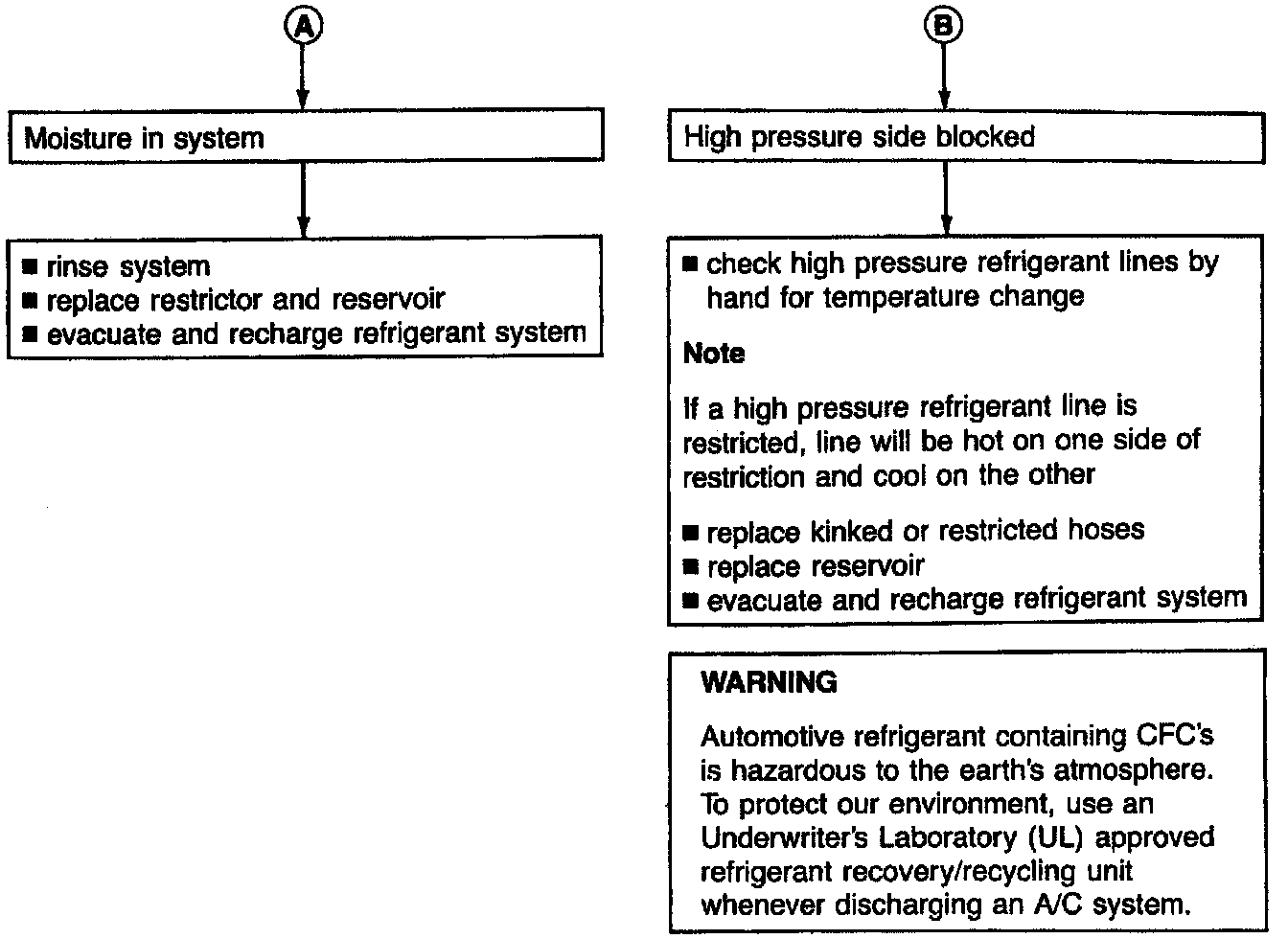 If noise comes from the compressor, check that compressor brackets are tight. If compressor makes knocking noise, especially during hard right turns, the refrigerant is probably over-filled.