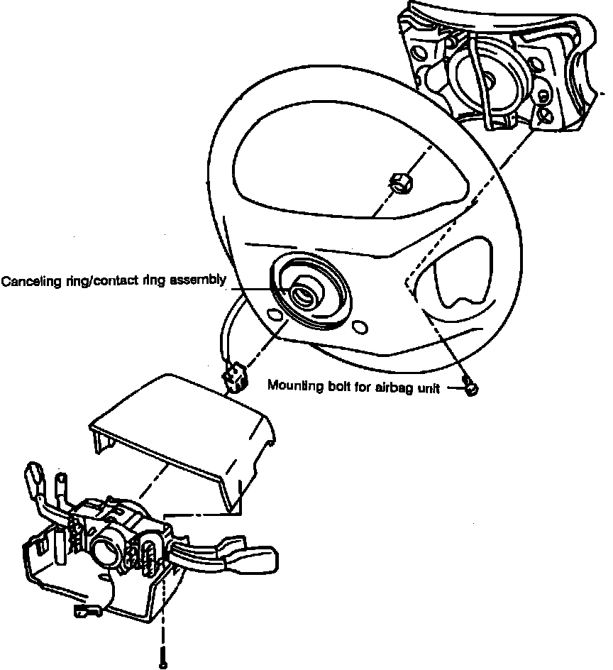 3. Disconnect airbag unit from steering wheel carefully and tilt downward.