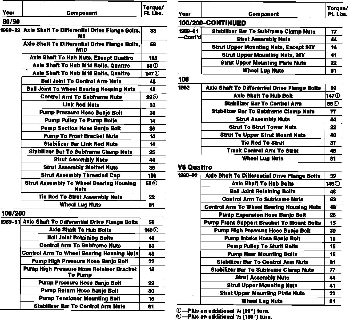 Tightening Specifications: