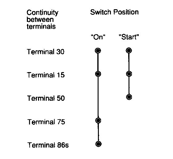 In the "Start" position, the ignition/start switch also actuates the starter solenoid (terminal 50) which in turn actuates the starter. (On automatic transmission cars, this starter solenoid circuit includes the automatic transmission relay).