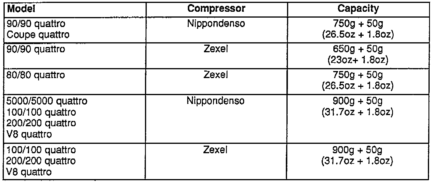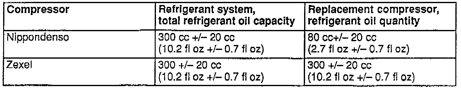 ^ Factory filled PAG oil (Part No. G052 154 A2) in Zexel R-134a replacement compressors does not require changing.