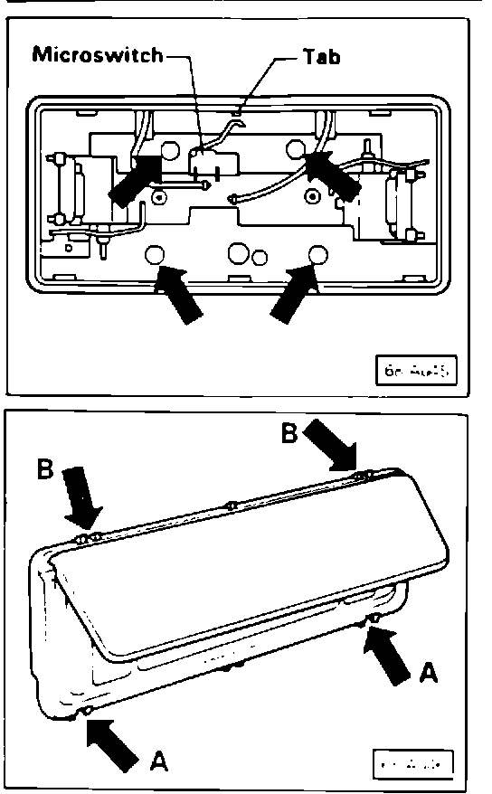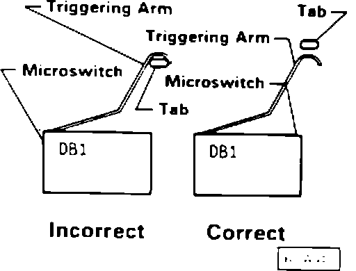 On Version II, if vanity light stills does not function or a loud clicking noise is heard when opening or closing the mirror cover, the microswitch triggering arm does not meet center tab and must be realigned.