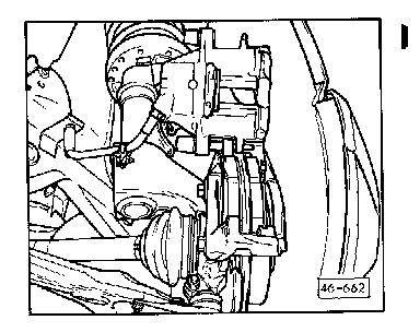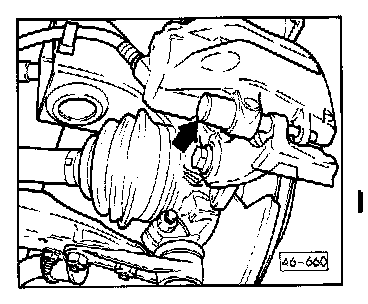 Remove brake hose clip from bracket on wheel bearing housing (upper arrow)