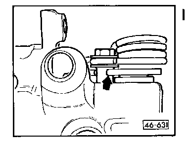 Loosen adjustment nut for parking brake cable (arrow) until both levers rest against stop