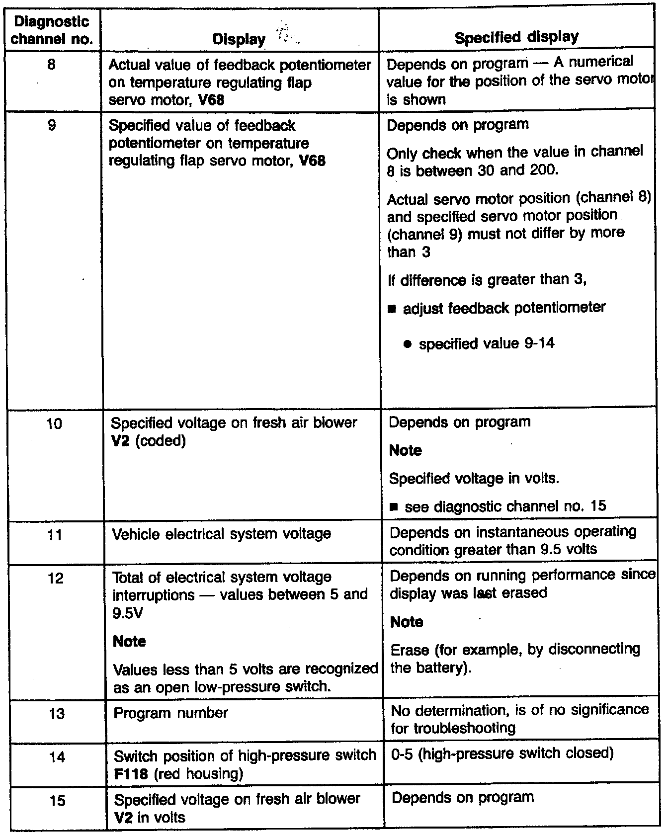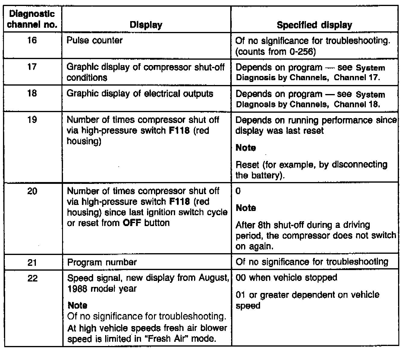 NOTE: For additional information on Channels 1, 7, 17 and 18 see System Diagnosis by Channels