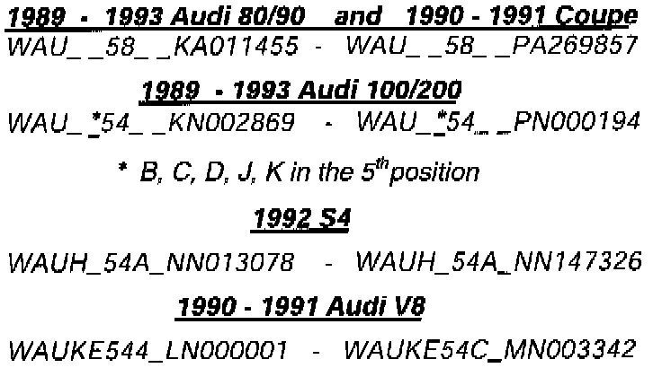 1989-93 Audi Vehicles Equipped With