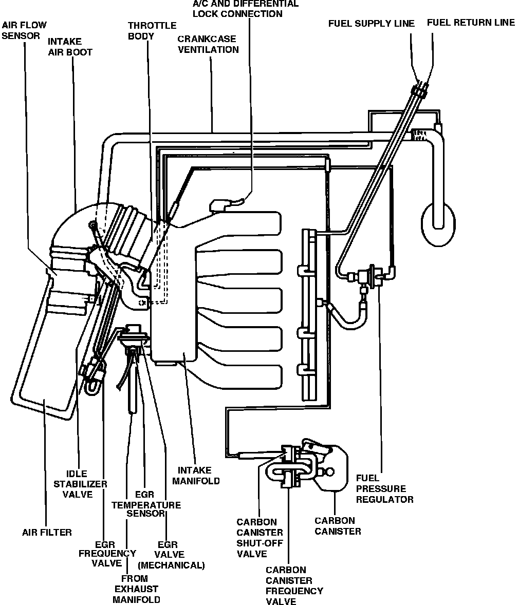 The function of the exhaust gas recirculation (EGR) system is monitored by the injection control unit. While the EGR valve is operated by vacuum, the vacuum supply is controlled by the EGR frequency valve, which is controlled by the ECU. This allows for a more precise control of when exhaust gasses are introduced into the combustion process, thus minimizing the affect on driveability and performance.
