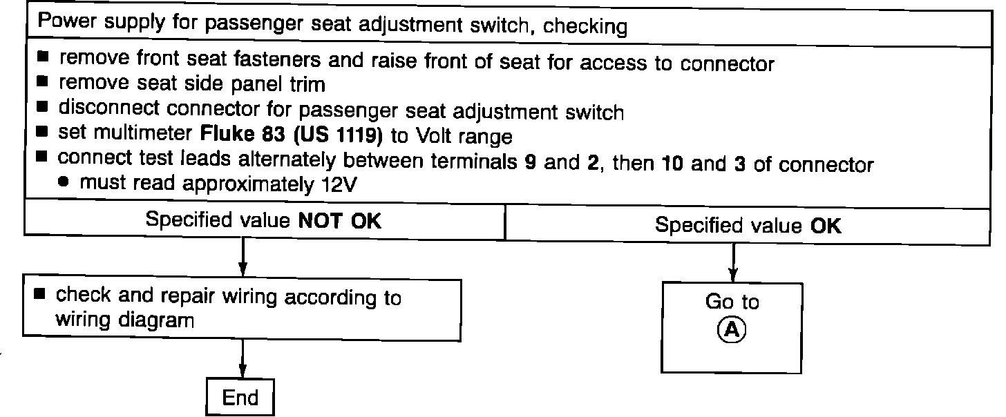 If defective components are identified in the following test steps, also check the wiring to these components using the wiring diagram. The procedures for removing and repairing passenger seat components are the same as for the driver's seat.