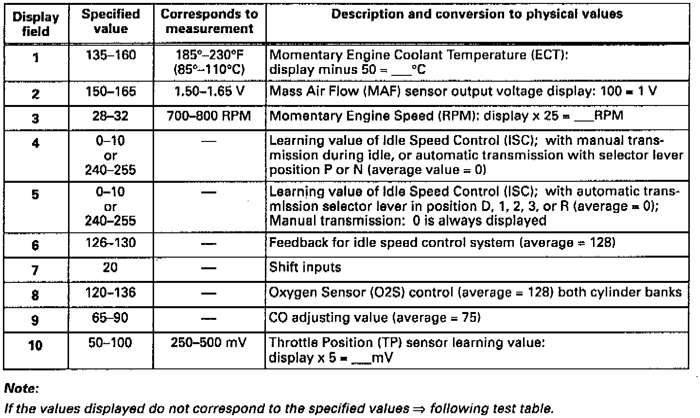 Basic Setting Specification Chart: