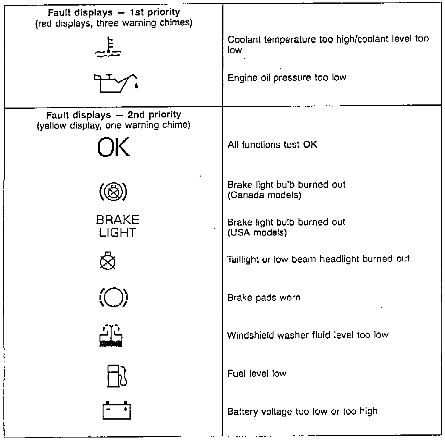 When the Auto-check system is not being used and the radio is on, the radio station frequency or the tape player in-use symbol will be displayed in the Autocheck display.