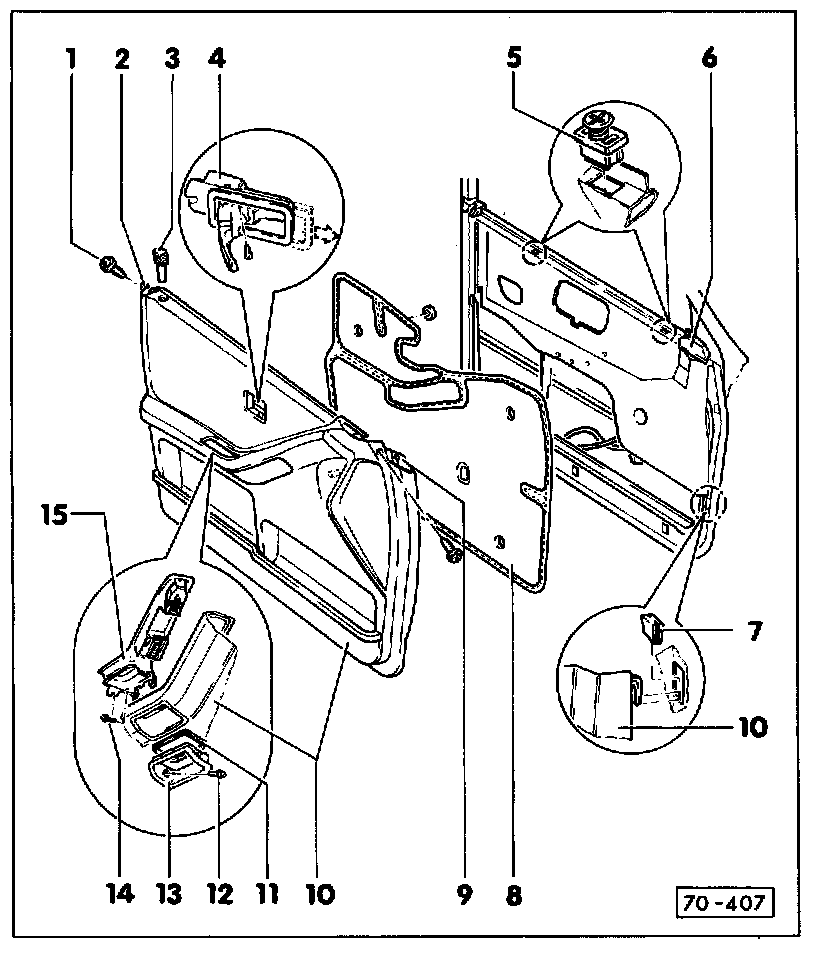 Front door trim panel, removing and installing1 - Sheet-metal screw