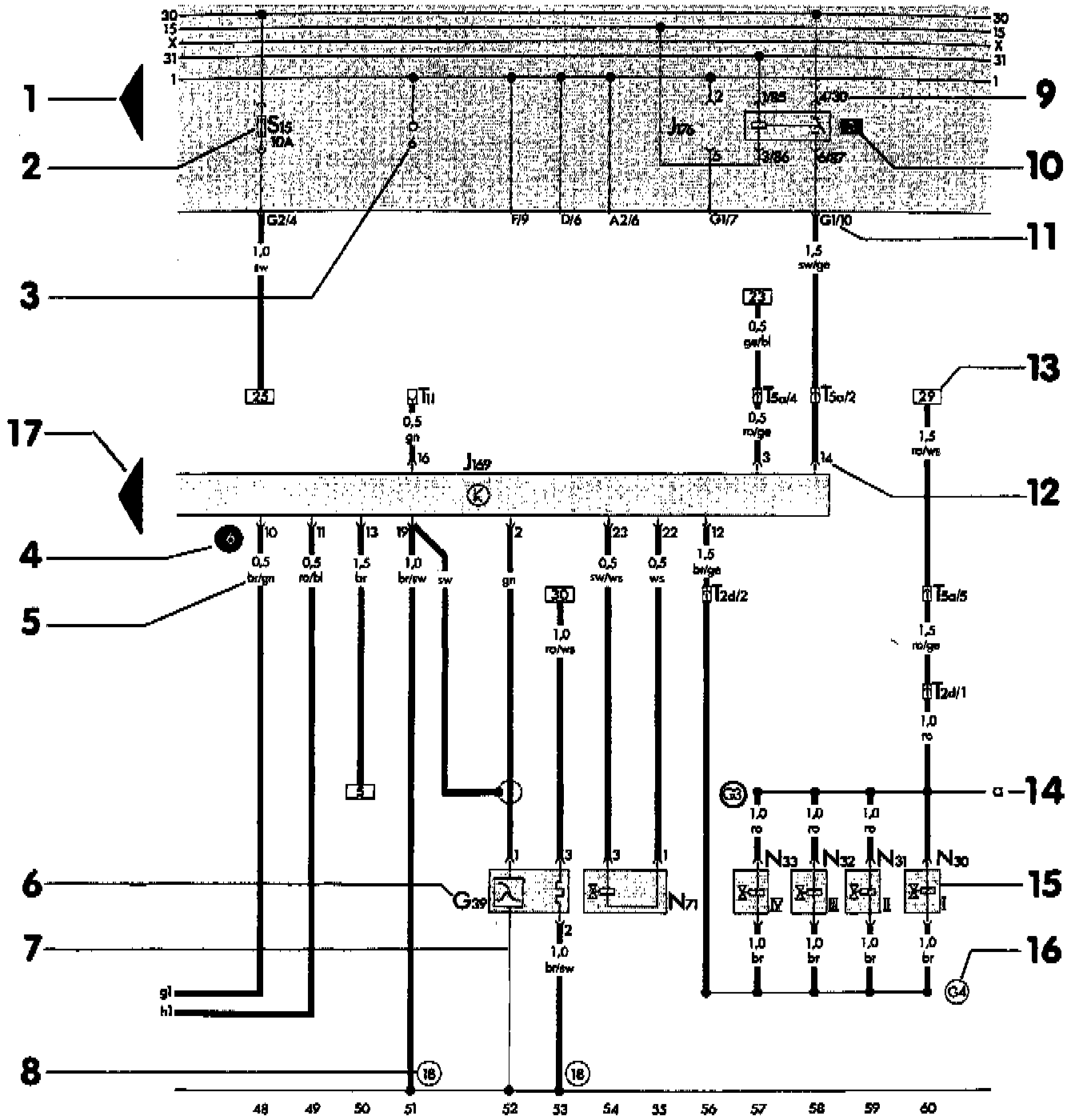 Audi wiring diagrams are divided into two types; the Main diagram and Optional Equipment diagrams. All diagrams are broken up by current track numbers. For 1993-on, diagrams have changed format. Component names are no longer listed on the schematic next to the component. Instead, an alpha-numeric code (example - J124) designates the component in the diagram. A legend at the bottom of each page identifies components (by their code), ground locations, welded harness points, and wire color codes, that are included in the diagram.The main diagram can be found under Diagrams / Electrical / Main Diagrams. Component locations by track number, connector locations, ground locations, and welded harness point locations, and a list of optional equipment system diagrams are also found there.