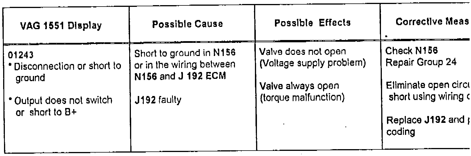 The following tables supplement the existing DTC tables as given in Repair Group 01.