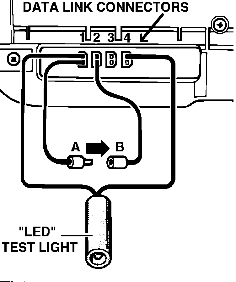 ^ To switch to the next injector without checking, (skip one) connect the jumper wire bridge connectors (A and B) together for at least 4 seconds and then separate, code of component now being activated will display.