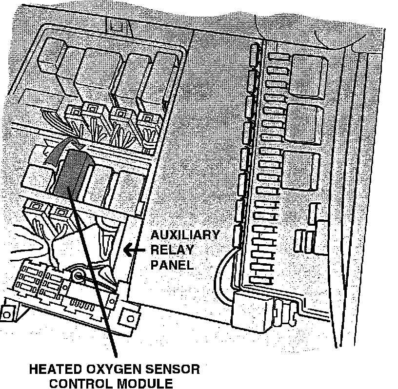 11. Connect the bridge connectors together for at least 4 seconds then separate as before, the ECM will switch and begin activating the Heated Oxygen Sensor Control Module (located in position 11 of the auxiliary relay panel, just above the DLC).