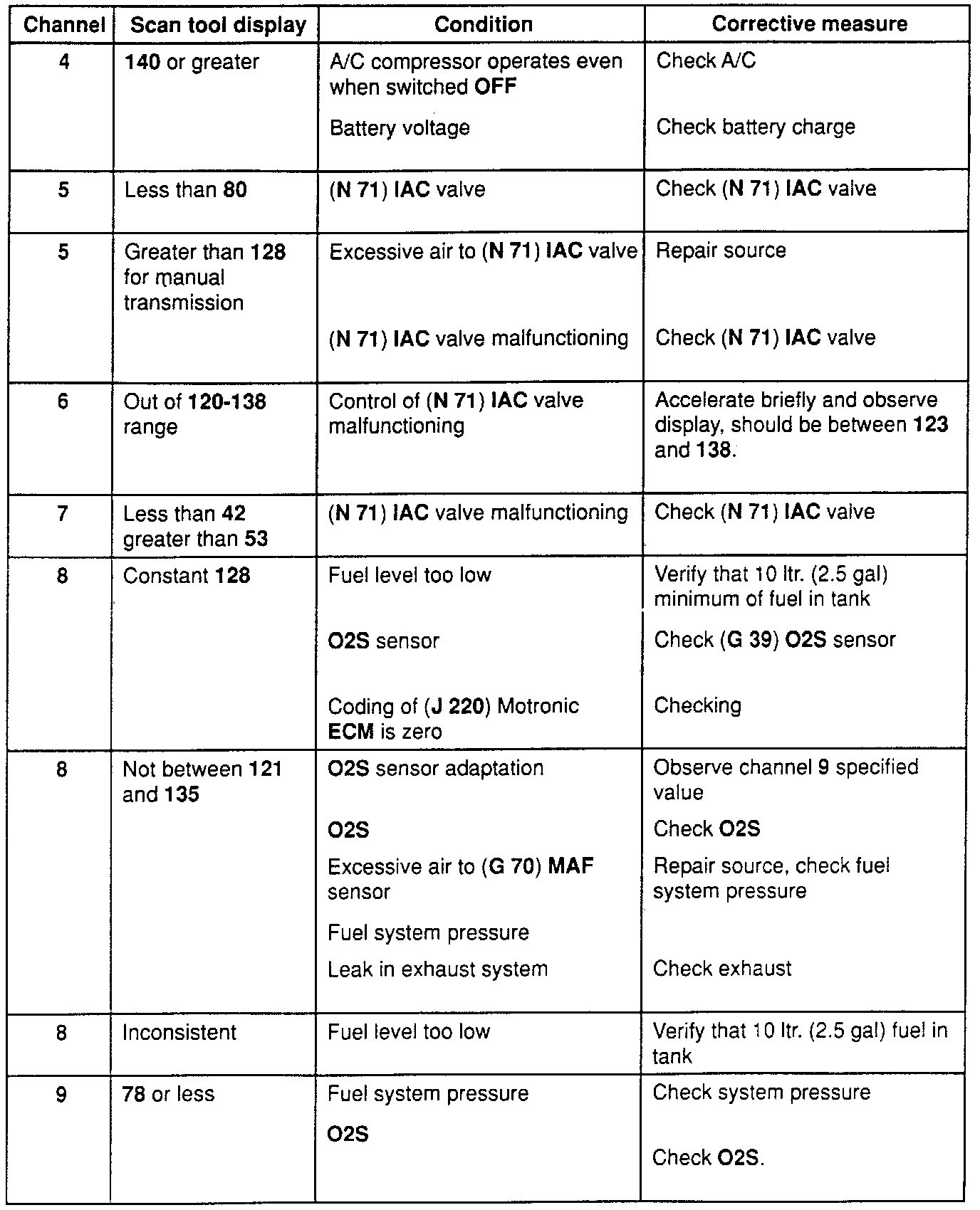 Diagnostic Chart - Channels 4 - 9