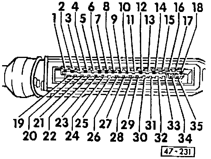 - Check wiring connection between 35-pin connector of ABS Control Module (J104) and TCM (J217) with digital multimeter Fluke 83 (US 1119) and auxiliary cables from VAG 1594: