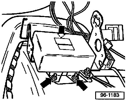 Removing and installing airbag triggering unitWARNING: Airbag power supply connector and battery ground strap must always be disconnected be fore working on the airbag or related systems.