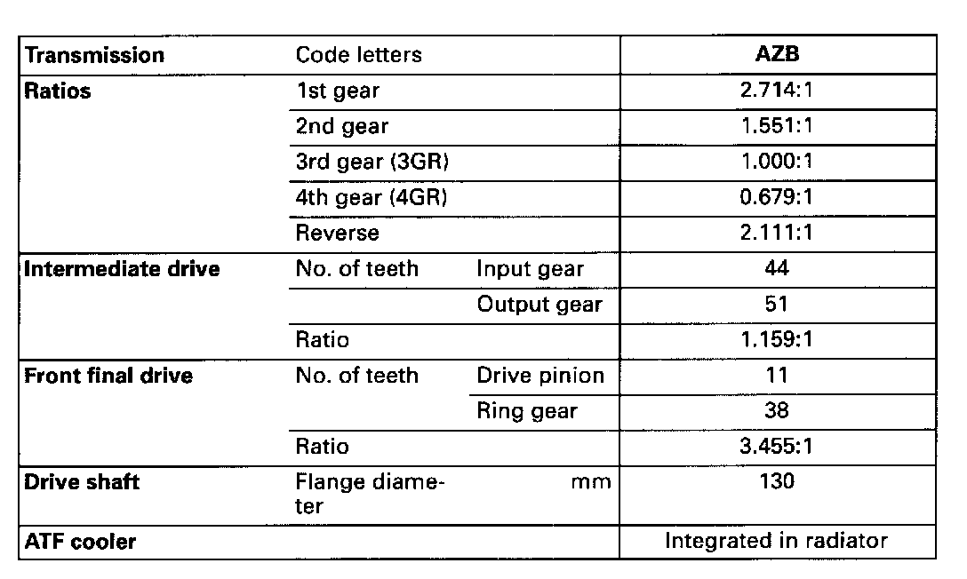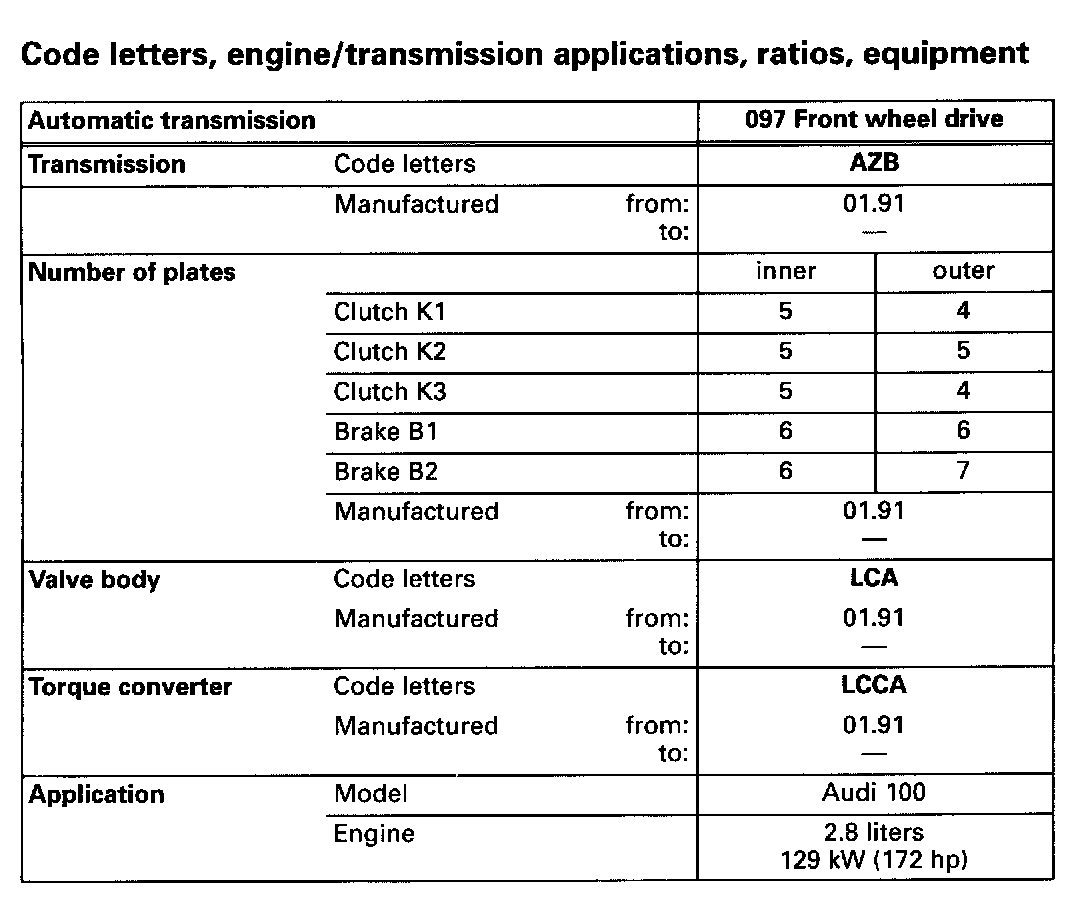 Code Letters Engine/Transmission Applications, Ratios, Equipment II: