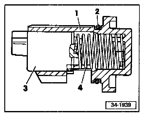 - Compress spring with plunger -3- and rotate approx. 1 turn in counterclockwise direction, tensioning spring, until lug on plunger -3- is in line with groove in plastic bushing.