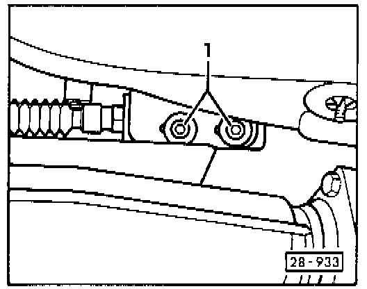 - Loosen bolt 1 on cable support bracket until support bracket can be moved without exerting too much force.