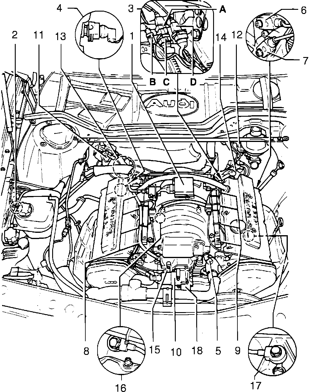 V8-MOTRONIC Under Hood Component Layout: