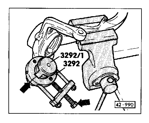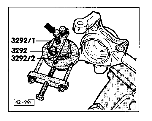 - Pull out bushing by threading in spindle of crossbar 3292/2 (arrow).