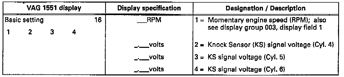 ^ The display groups 011 through 019 apply to driveability troubleshooting (idle problems and/or loss of power) and special component malfunctions.