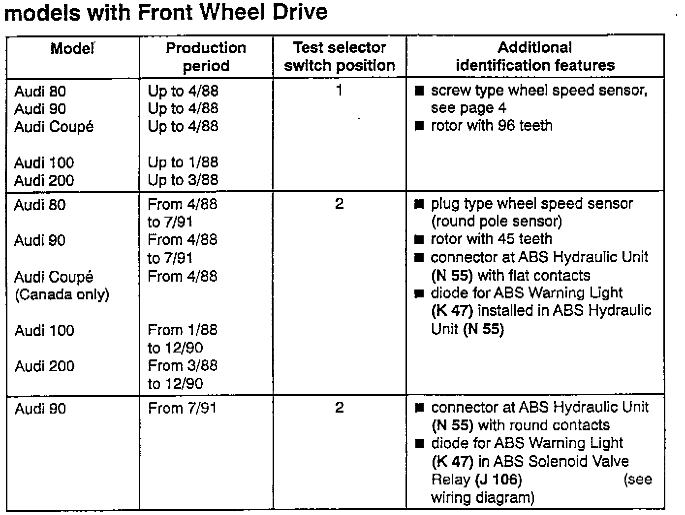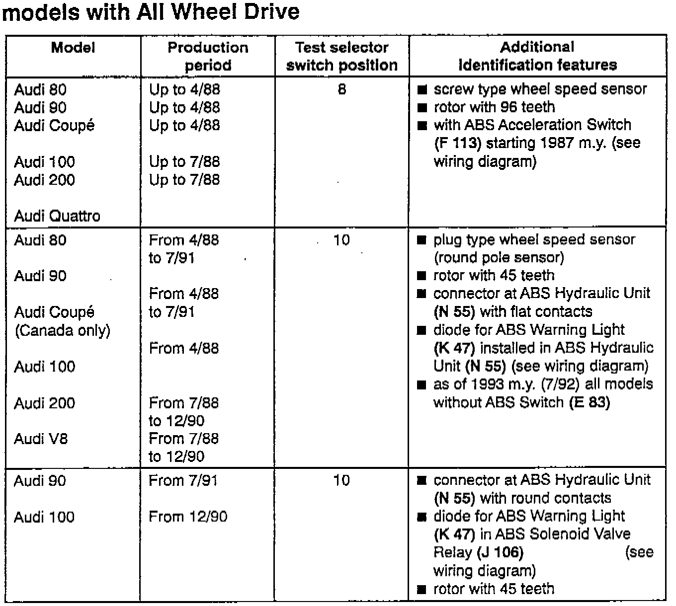 ^ installed on Audi models with AWD (All Wheel Drive) from Model Year 1987