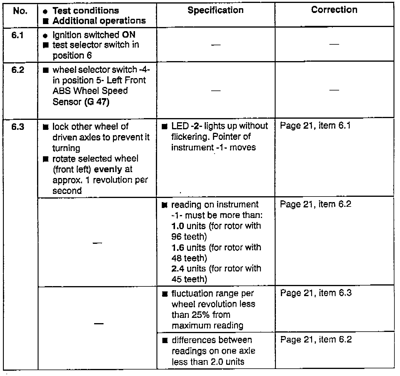 ^ wheel selector switch -4- in position 6 and perform test of Right Front ABS Wheel Speed Sensor (G 45) - on front right wheel from test step 6.3