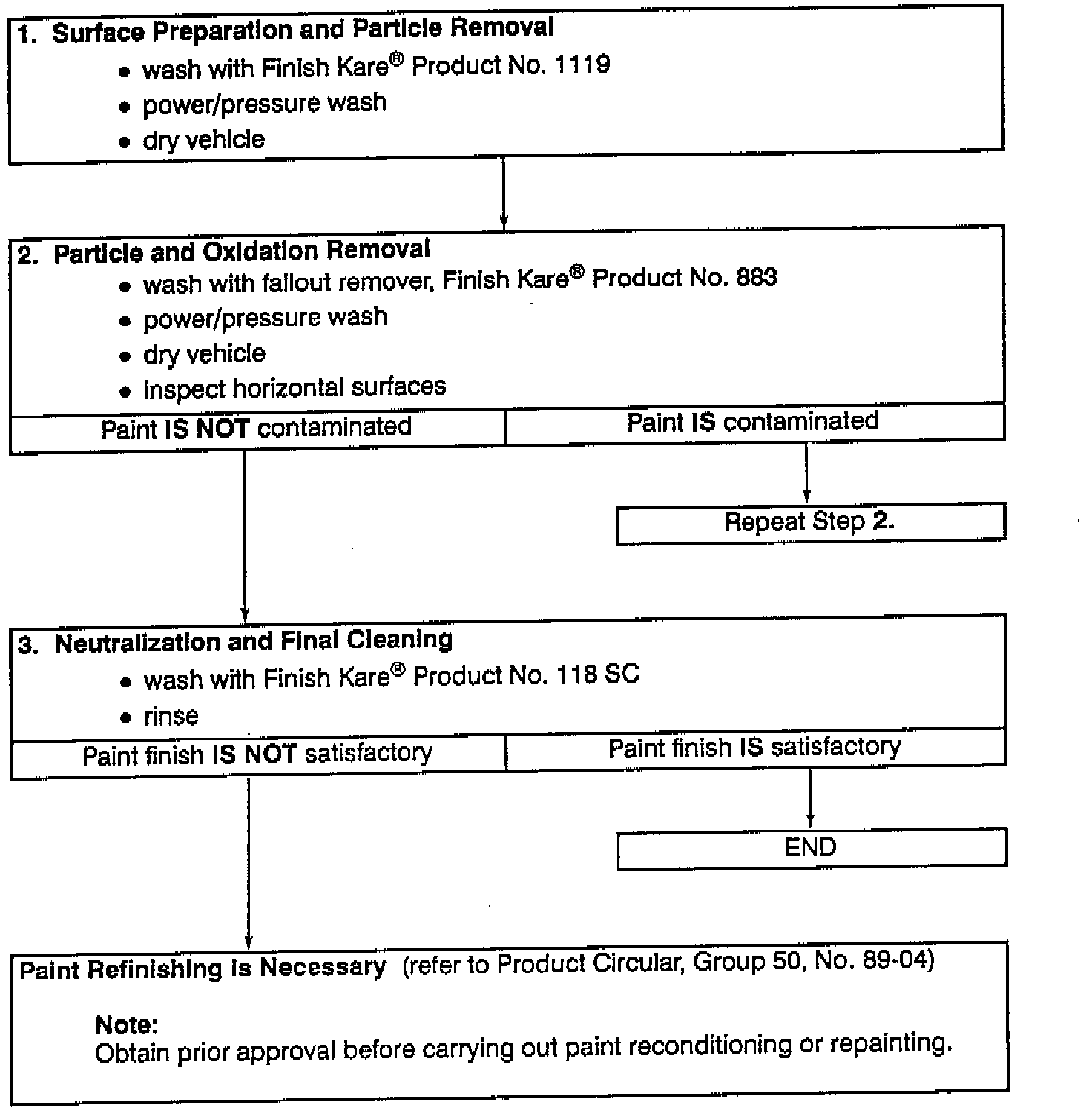 - Wash vehicle thoroughly with a solution of Finish Kare(R) Product No. 118 SC (locally available) and water