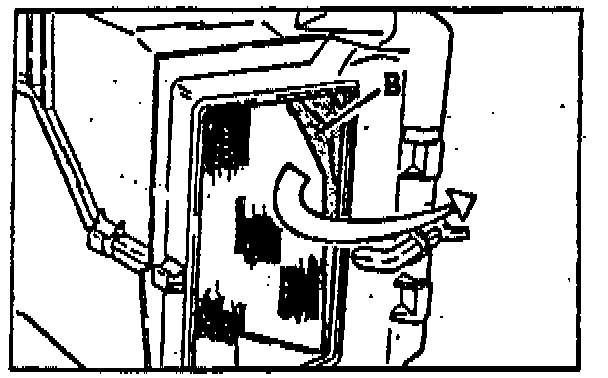 - Pull air distribution housing forward slightly to free stud at flange -C- and side vent connections, then press air distribution housing down and keep it down.