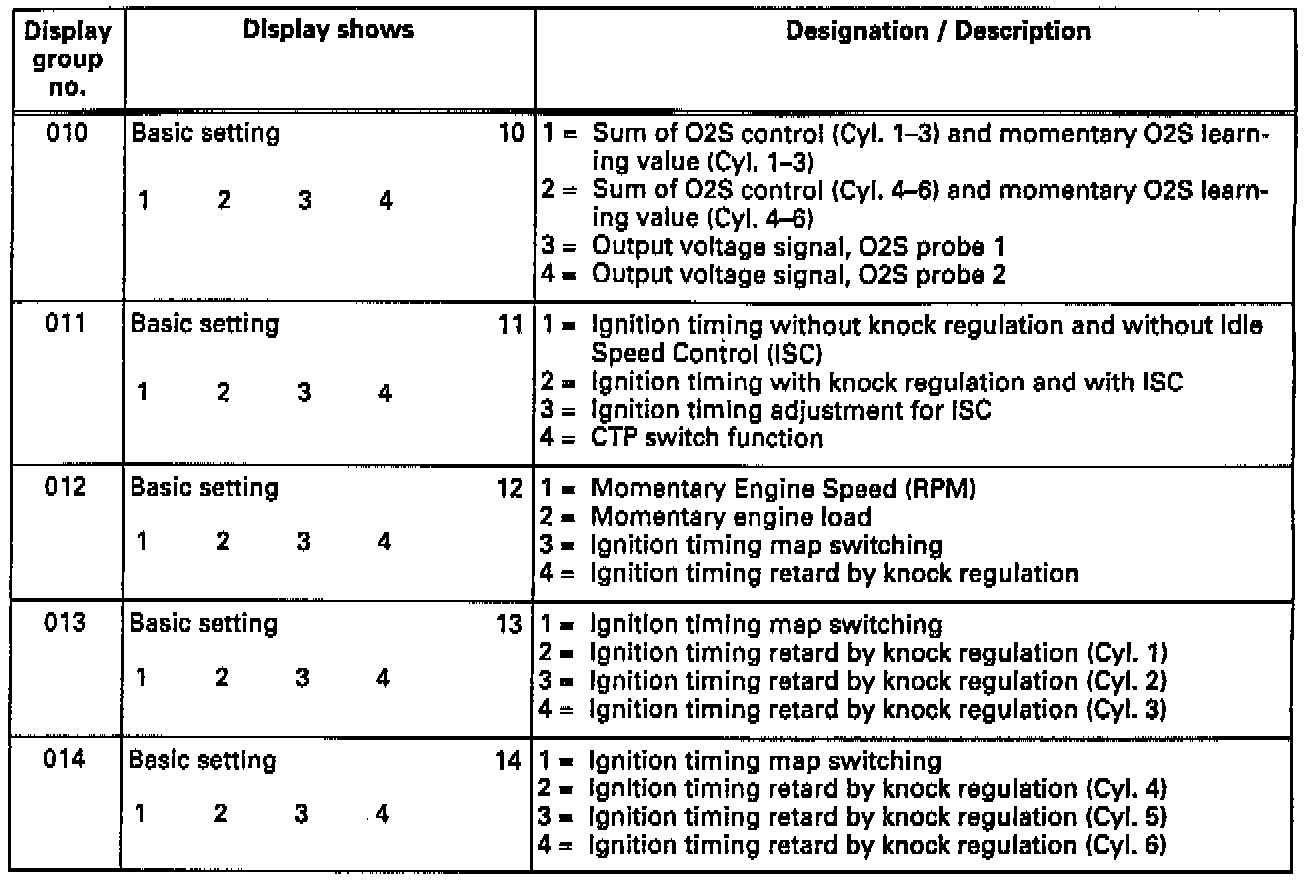 Overview, Display Groups 010 To 014: