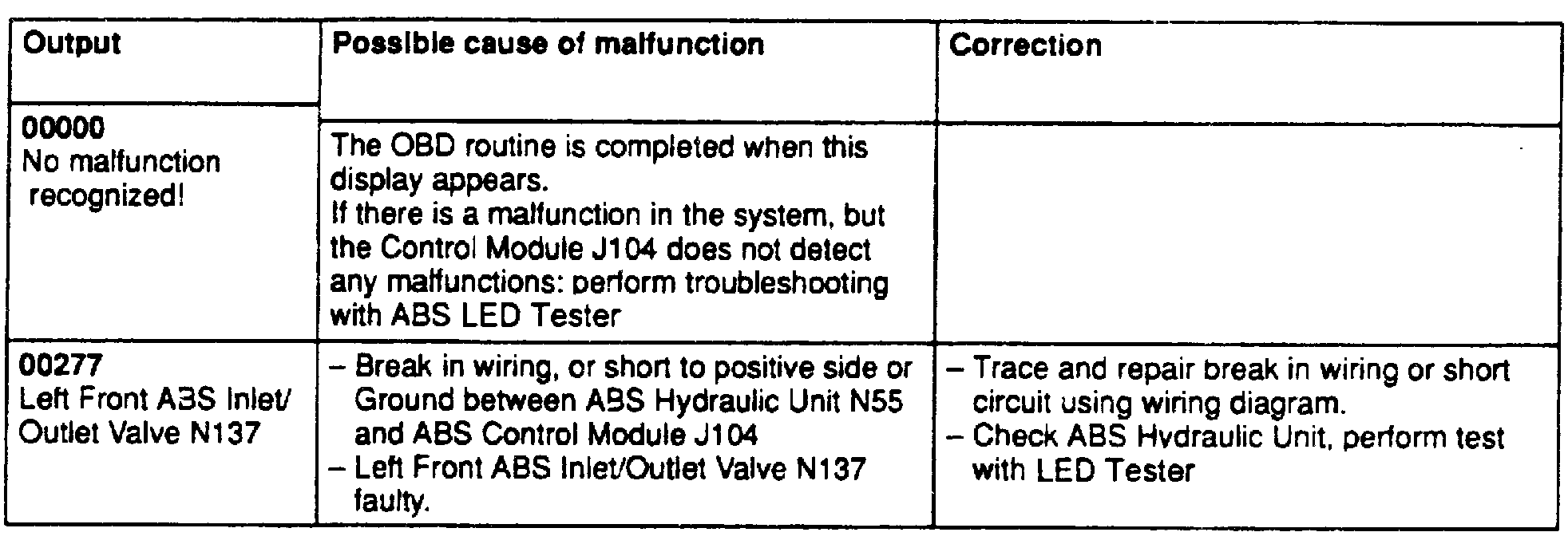 Fig.22 Code 00000 & 00277: No Malfunction Recognized & Left Front ABS Inlet/Outlet Valve.: