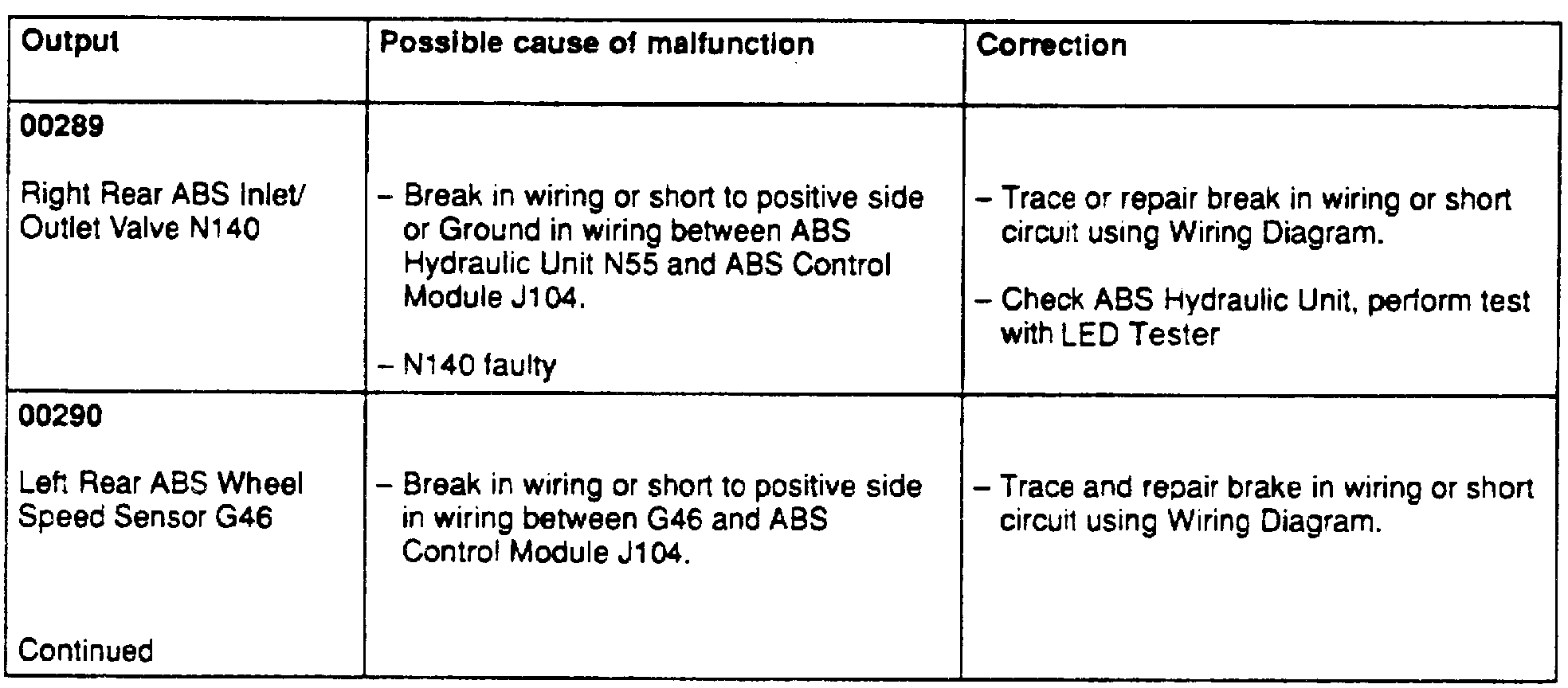 Fig.27 Code 00289 & 00290: Rear Right Inlet/Outlet Valve & Left Rear ABS Wheel Speed Sensor.: