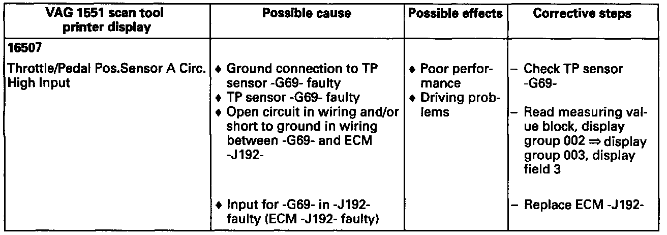 DTC '16507" is stored as soon as the signal voltage is greater than