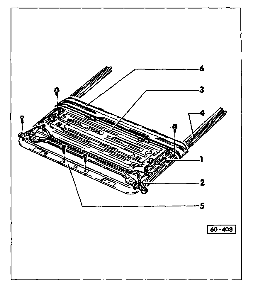 Note: If parts of the sunroof mechanism need to be removed, then the entire subassembly must be removed first.