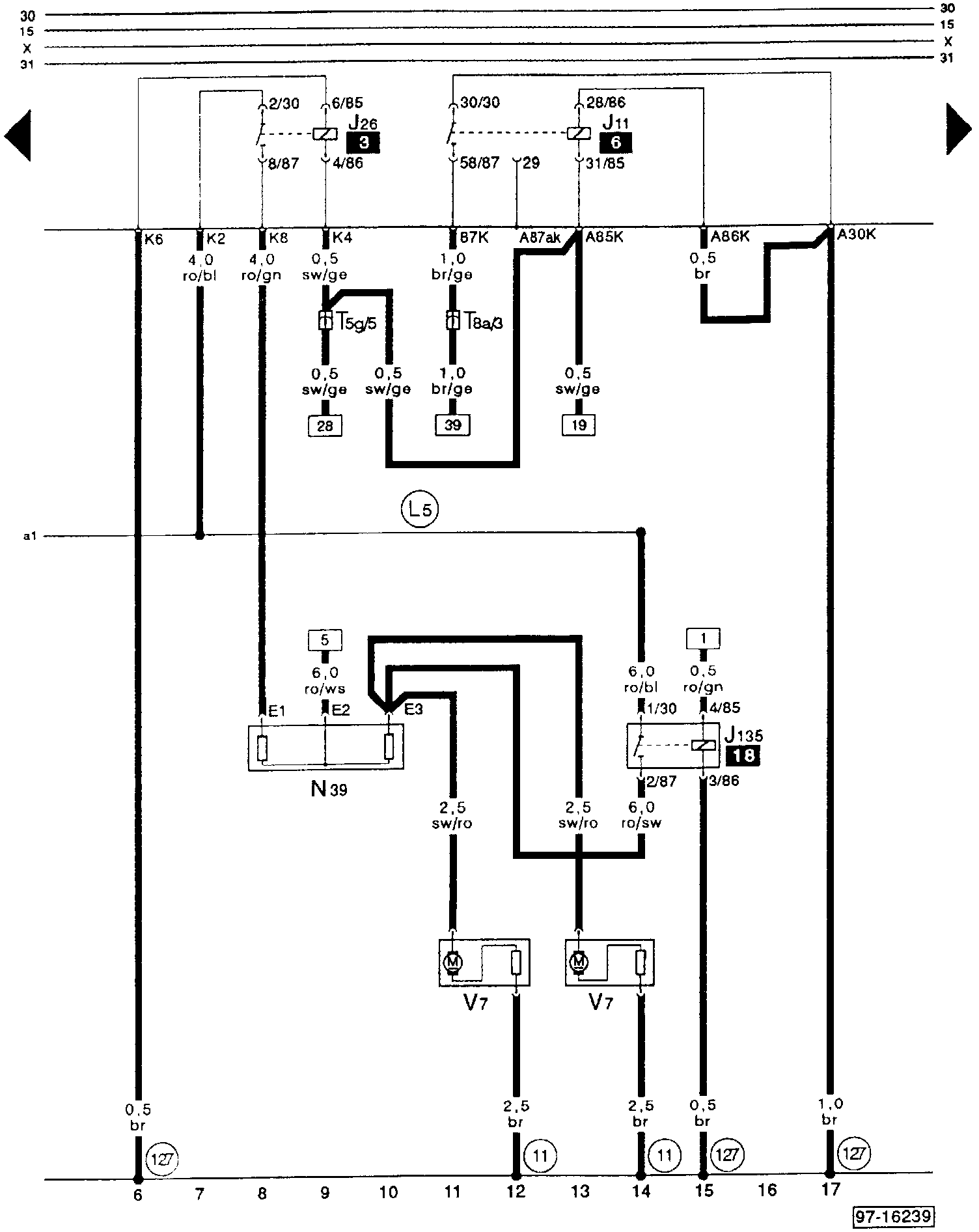 NOTE: Grounds connections are indicated on the diagram by a numeric code inside a circle.