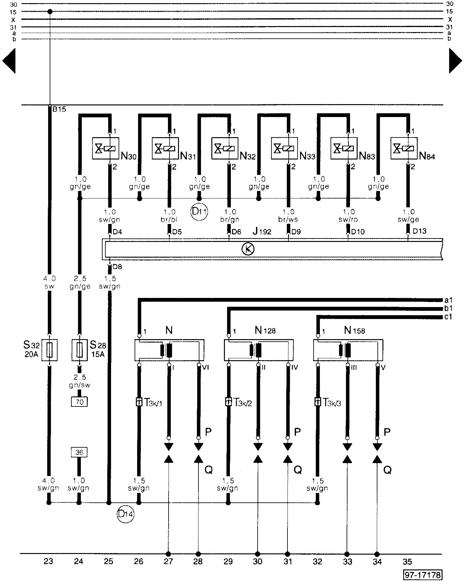 S28 - Fuse in auxiliary fuse holder (Engine Control II-Injectors