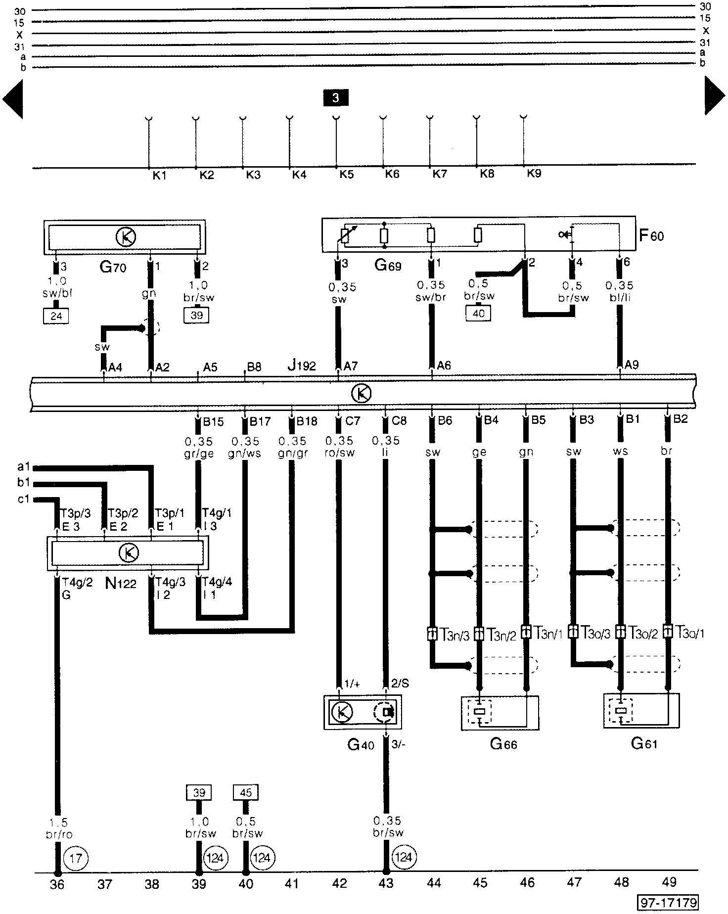 NOTE: Grounds connections are indicated on the diagram by a numeric code inside a circle