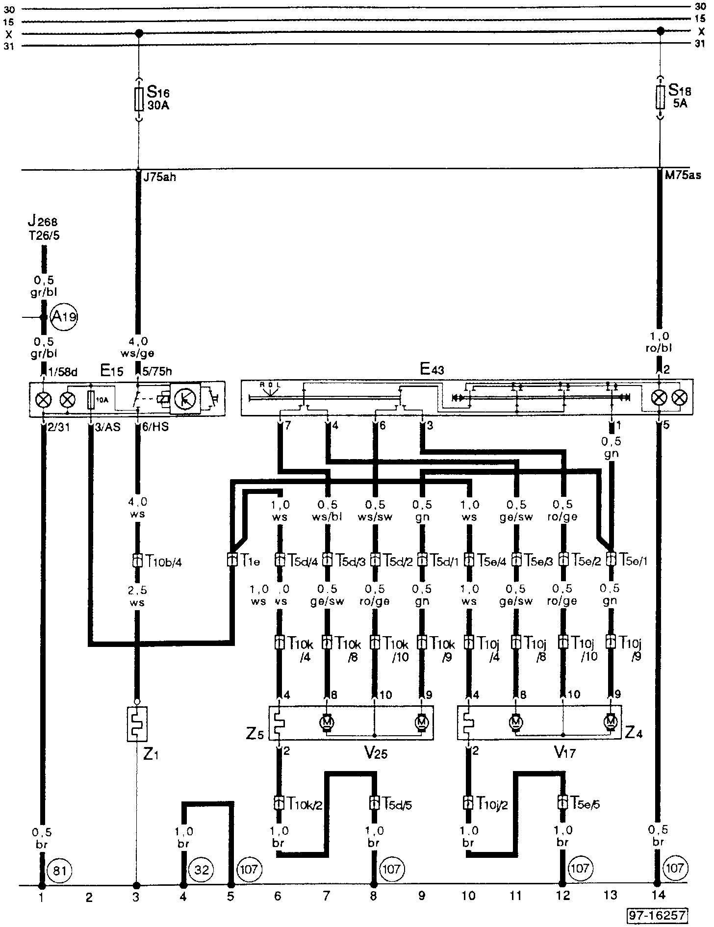 V17 = Driver's Side Mirror Adjustment Motor
