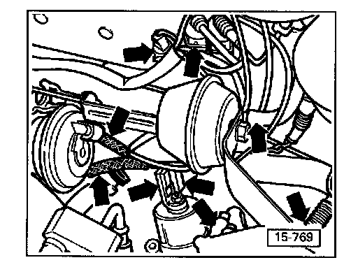 - Disconnect hydraulic line (arrow).