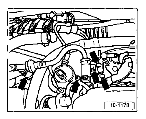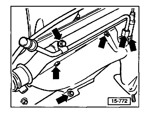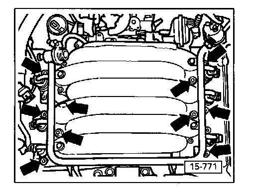 - Remove bolts (arrows) and remove intake manifold.